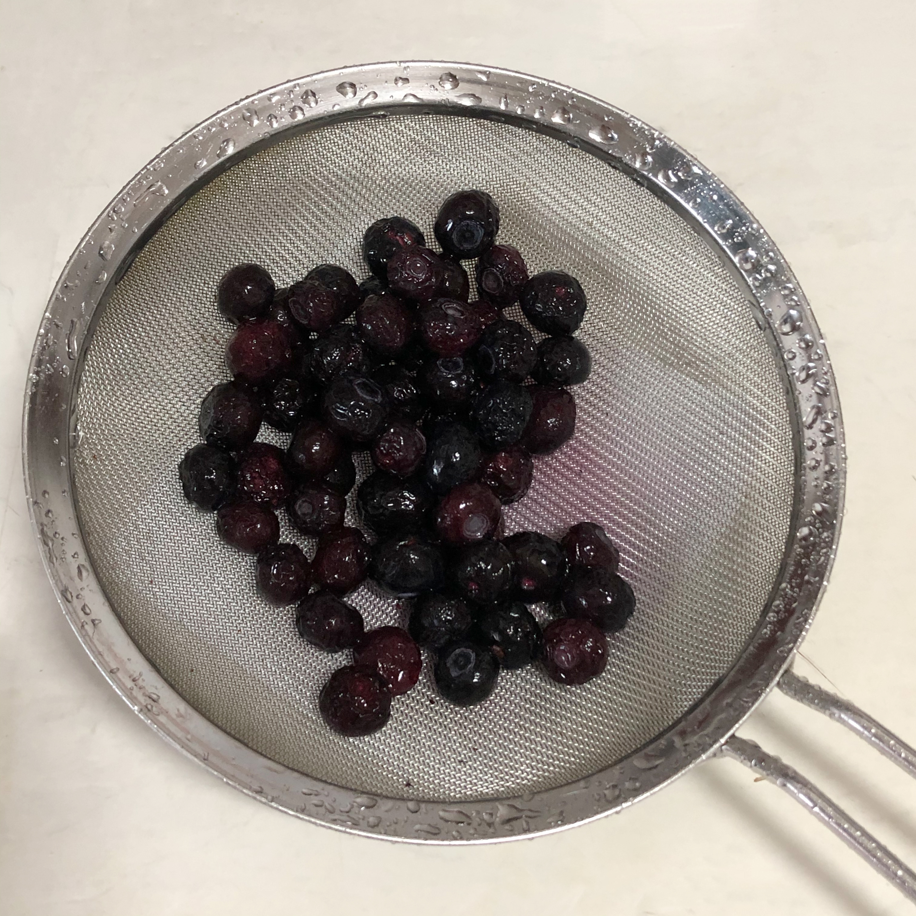 블루베리는 흐르는 물에 씻은 뒤 체에 밭쳐 물기를 빼줍니다.